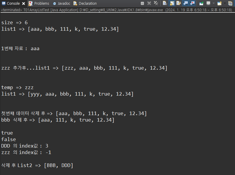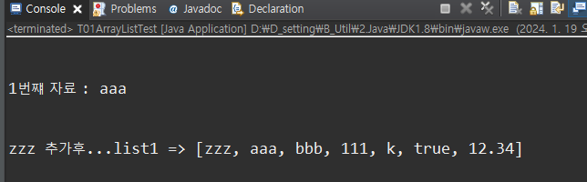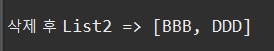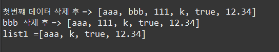 System.out.println("첫번쨰 데이터 삭제 후 => " + list1);