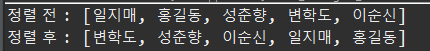 * 정렬은 기본적으로 '오름차순' 정렬을 수행한다. [사전순으로 정렬됨]