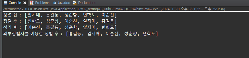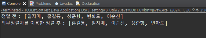 System.out.println("외부정렬자를 이용한 정렬 후 : " + list);